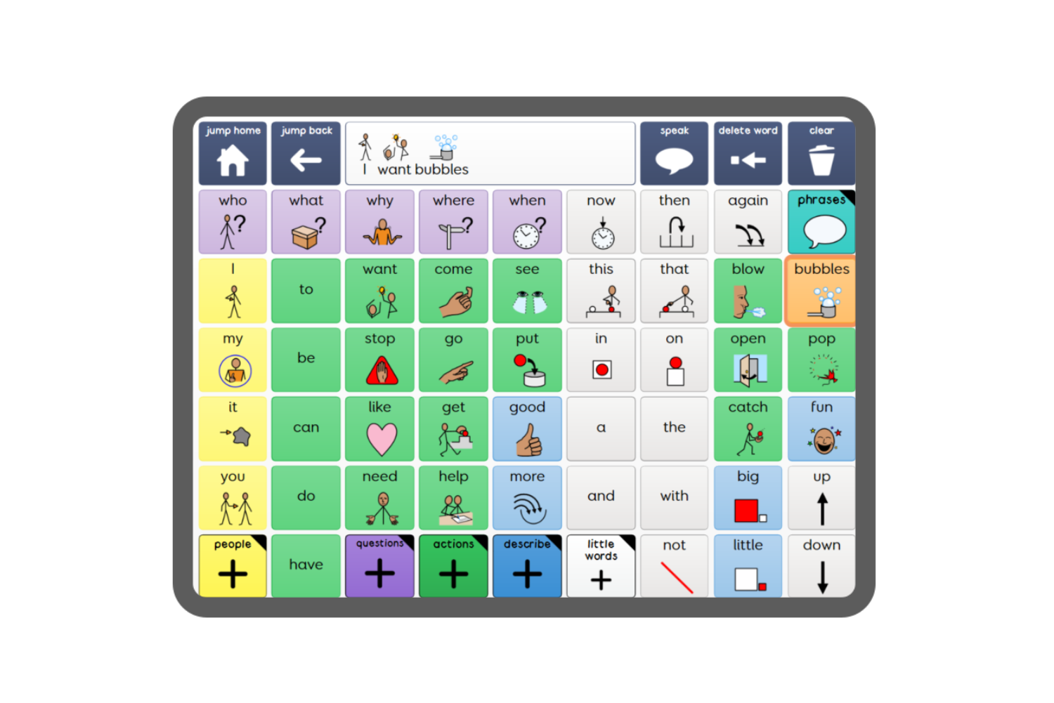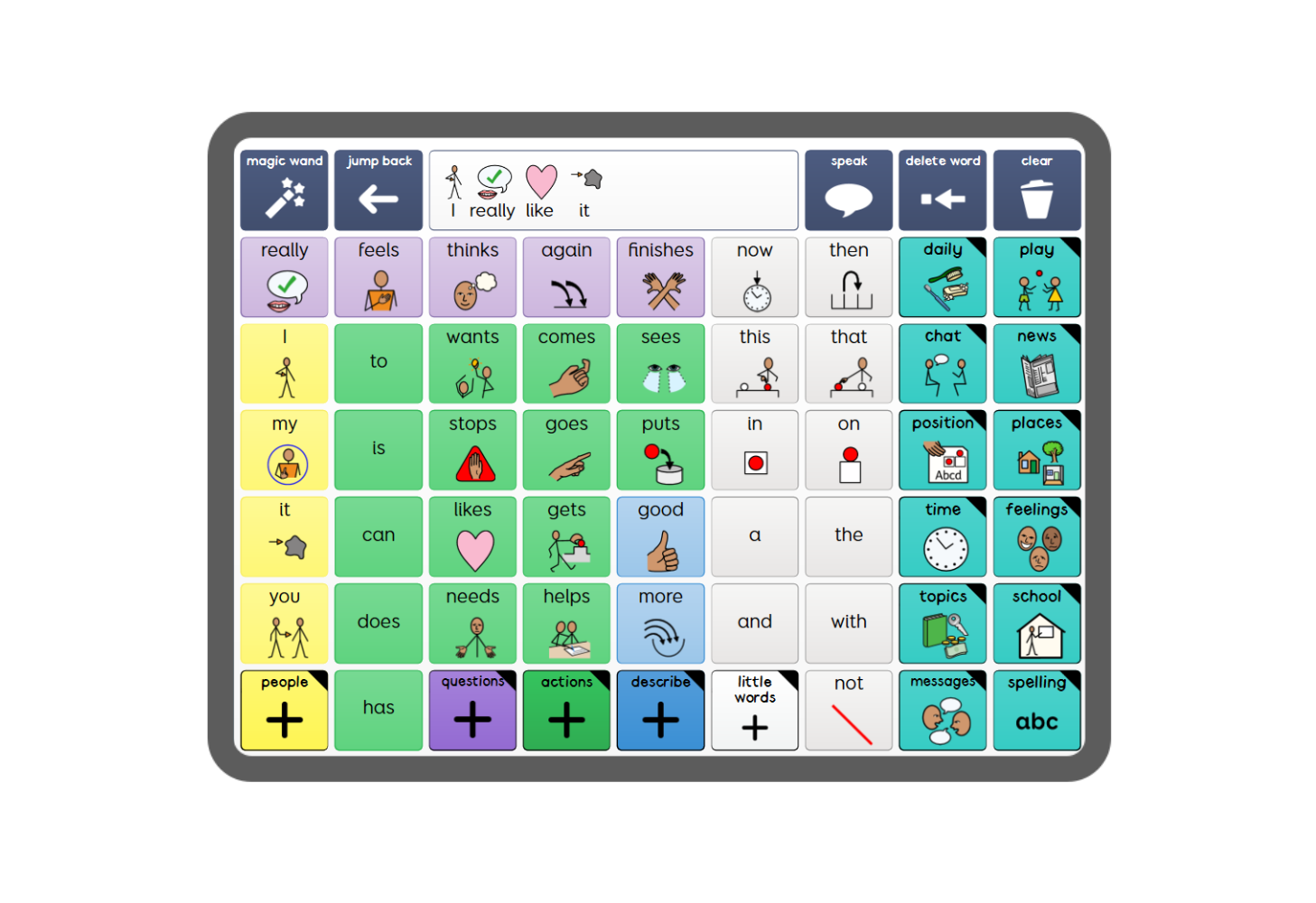 Grid for iPad is a complete AAC app that includes instant access to resources for symbol and text communication.